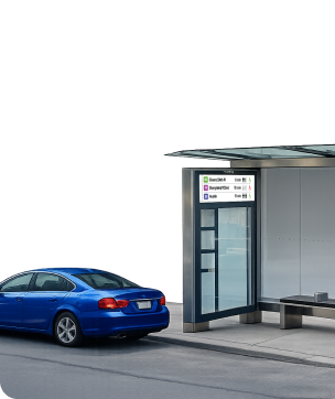 Shelter Connect is a super-wide LCD display system designed for transit shelters. It serves as a primary passenger communications channel while discreetly capturing non-invasive usage and count-based insights.