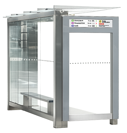 Designed for 24/7 outdoor operation in bus shelters and transit hubs